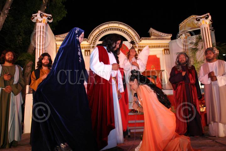 México, D. F. 08 Abril 2004.- Niños y jóves vestidos de nazarenos acompañaron a Jesus durante la ultima escena. FOTO: Nelly Salas/CUARTOSCURO.COM