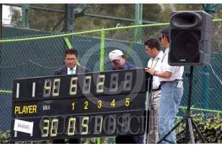 MEXDF09ABRIL2004.- Durante el primer juego, el marcador del Club Chapultepec se cayo debido al fuente viento. Trabajadores levantan la pizarra. FOTO: Germán Romero/CUARTOSCURO.COM