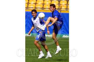MONTERREY, NUEVO LEON 09ABRIL2004.- Jugadores de los Tigres de la UNL durante el entrenamiento previo al clasico regiomontano. FOTO: Jorge López/CUARTOSCURO.COM