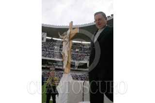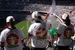 México, D.F., 10ABRIL2004.- Una joven es confesado por un padre en los pasillos del Estadio Azteca, durante la reunión de miles de jóvenes cristianos para conmemorar la resurreción de Jesucristo. FOTO: Moisés Pablo/CUARTOSCURO.COM