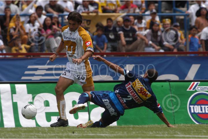 MEXDF11ABRIL2004.- La figura del encuentro fue Francisco "Kikín" Fonseca, quien fue el anotador de los 3 goles. Los Pumas se impusierón tres tantos a cero a los Camoteros del Puebla, en la cancha del estadio México 68. FOTO: Germán Romero/CUARTOSCURO.COM