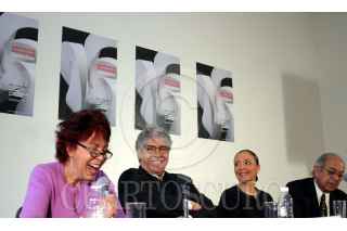 México, D.F., 13ABRIL2004.- El escultor Sebastián y Graciela de la Torre, durante la conferencia de prensa en la cual anunciaron los detalles de la inauguración de la exposición Geometría Emocional en el museo de San Ildelfonso. FOTO: Moisés Pablo/CUARTOSCURO.COM