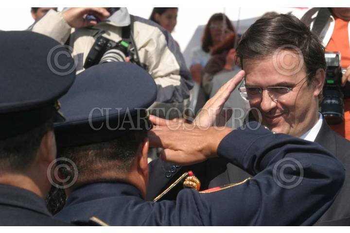México, D.F., 13ABRIL2004.- Una niña rinde honores a la bandera durante la ceremonia de entrega de constancias de ascensos a policias de la bancaria en el monumento a la Revolución. FOTO: Moisés Pablo/CUARTOSCURO.COM
