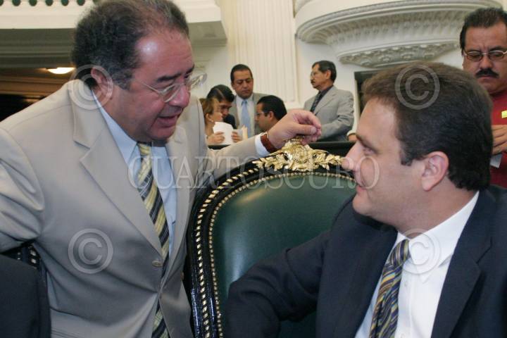 México, D. F. 13 Abril 2004.- Lorena Villavicencio, presidenta en turno de la mesa directiva de la Asamblea Legislativa saluda a Alejandra Barrales previo a inicio de la sesión. FOTO: Nelly Salas/CUARTOSCURO.COM