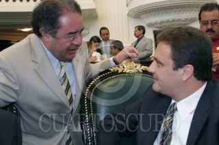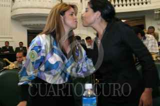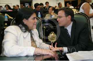México, D. F. 13 Abril 2004.- Lorena Villavicencio, presidenta en turno de la mesa directiva de la Asamblea Legislativa saluda a Alejandra Barrales previo a inicio de la sesión. FOTO: Nelly Salas/CUARTOSCURO.COM