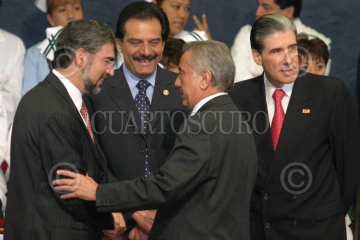 México, D.F.,14ABRIL2004.- Santiago Levy, director del IMSS y Joel Ayala, sindicato de trabajadores al servicio del estado, durante la entrega de Condecaraciones y Premios del Consejo de Salubridad General. FOTO: Moisés Pablo/CUARTOSCURO.COM