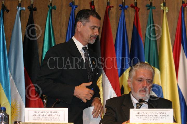 México, D. F. 14 Abril 2004.- Gerardo Mosque de la STPS, Jacques Wagner ministro secretario del consejo económico de Brasil, Abascal Carranza, secretario del trabajo, Tomás Duplá de Moral, director de la comisión europea durante la ceremonia de inauguración del tercer encuentro de la sociedad civil organizada Unión Europea America Latina y Caribe. FOTO: Nelly Salas/CUARTOSCURO.COM