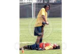 Ivan Zamorano posa para la foto con aficionados japoneses al termino del entrenamiento. FOTO:Oswaldo Ramírez/CUARTOSCURO.COM