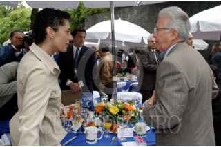 México, D. F. 04 Junio 2004.- La secretaria del medio ambiente del D. F., Claudia Shembaum y Raúl Muñoz Leos, director de PEMEX conversan durante la ceremonia de Conservacion del Medio Ambiente en el bosque de Chapultepec. FOTO: Nelly Salas/CUARTOSCURO.COM