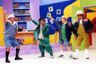 MEXDF 04JUNIO2004.- Rafael Inclàn participa en el programa de televisiòn ¨La escuelita VIP¨. Jorge Ortiz de Pinedo, David Villalpando, Polo Polo y Rafael Inclàn. FOTO: Germàn Romero/CUARTOSCURO.COM