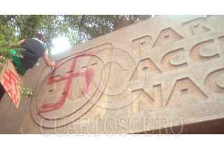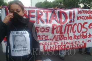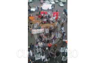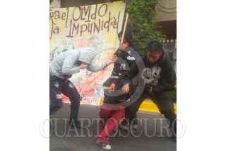 MÉXICO, D.F. 04JUNIO2004.- Por medio de un performance en donde simularon una detención policiaca altermundistas se manifestaron frente a la sede del PAN nacional para exigir la liberacion de los detenidos en Guadalajara Jalisco por haber estado implicados en los disturbios ocurridos el pasado viernes 28 de marzo en Guadalajara en el marco de la Cumbre de América latina, el Caribe y Unión Europea. FOTO: Iván Stephens/CUARTOSCURO.COM