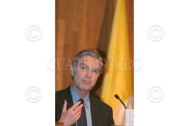 MÉXICO, D. F. 05JUNIO2004.- El Mons. Marcelo Sánchez Sorondo, Edmond Malinvaud, Luis Ernesto Derbez y Giuseppe Bertello en la clausura del coloquio "Globalización y justicia Internacional". FOTO: Iván Stephens/CUARTOSCURO.COM
