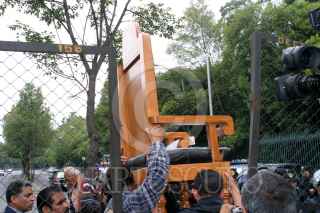 México, D.F. 06 JUNIO 2004.- Enrique Andrade, director de audiencias de presidencia, despúes de una larga espera autorizó la entrada a Los Pinos de la silla certificada elaborada con madera de pino y piel que Green Peace le regaló al presidente Vicente Fox. FOTO: Sandra Perdomo/CUARTOSCURO.COM