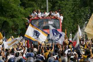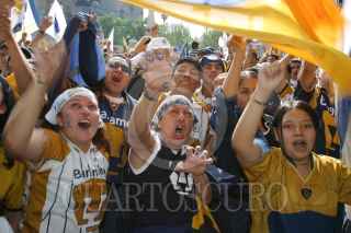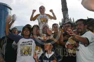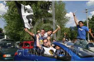 México, D. F. 13 Junio 2004.- Cientos de aficionados se congregaron en el Angel de la Idependencia para festejar el triunfo de los Pumas de la Universidad en el torneo de clausura 2004. FOTO: Nelly Salas/CUARTOSCURO.COM