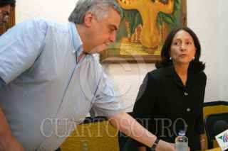 Zacatecas, Zacatecas 14 JUNIO 2004.- Carlos Pinto, presidente estatal del PRD en Zacatecas y Amalia Garcia, candidata a la gubernatura del Estado antes de dar inicio a la conferencia ofrecida en las instalaciones del partido. FOTO: Sandra Perdomo/CUARTOSCURO.COM