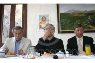 MEXDF28JULIO2004.- David Ramón, investigador de la UNAM, Iván Trujillo, director de la Filmoteca de la UNAM y Francisco Gaytan, subdirector de la Filmoteca durante la conferencia de prensa en donde anunciaron un homenaje a Dolores del Río. FOTO: Sandra Perdomo/CUARTOSCURO.COM