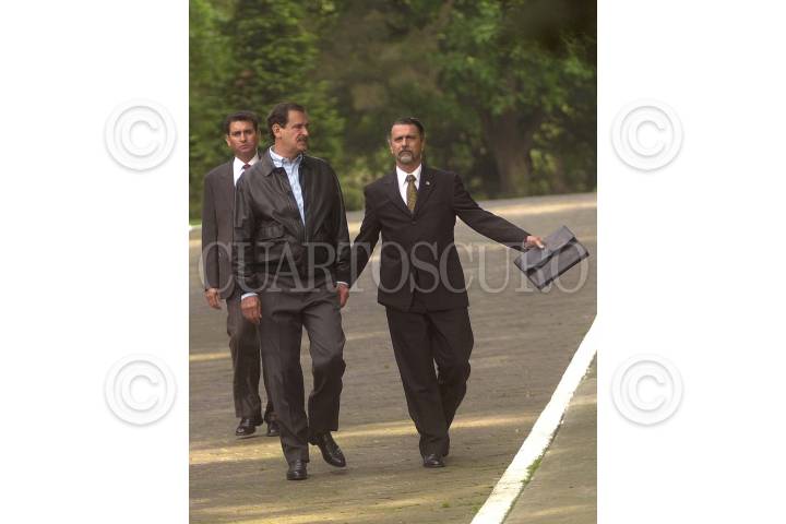 MEXDF30AGOSTO2004.- Emilio Goicochea Luna, Secretario particular, el presidente Vicente Fox al termino de la ceremonia de estategias de micro empresarios, que se realizo en la hondanada de la residencia presidencial. FOTO: Eunice Adorno/CUARTOSCURO.COM