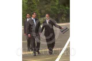 MEXDF30AGOSTO2004.- Emilio Goicochea Luna, Secretario particular, el presidente Vicente Fox al termino de la ceremonia de estategias de micro empresarios, que se realizo en la hondanada de la residencia presidencial. FOTO: Eunice Adorno/CUARTOSCURO.COM