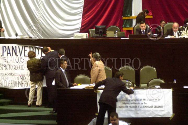 MEXDF30JULIO2004.- Juan de Dios Castro, presidente de la Mesa directiva, durante la sesión extraordinaria de la Cámara de Diputados en donde se aprobó en lo general las reformas a la Ley del Seguro Social, con lo cual los nuevos afiliados al IMSS tendrán que costear su pensión y cobrarla en 30 años. FOTO: Eunice Adorno/CUARTOSCURO.COM