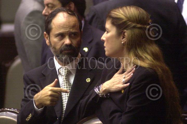 MEXDF30JULIO2004.- Juan de Dios Castro, presidente de la Mesa directiva, durante la sesión extraordinaria de la Cámara de Diputados en donde se aprobó en lo general las reformas a la Ley del Seguro Social, con lo cual los nuevos afiliados al IMSS tendrán que costear su pensión y cobrarla en 30 años. FOTO: Eunice Adorno/CUARTOSCURO.COM