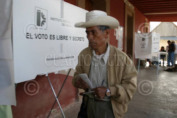 San Mateo, Oaxaca 01 de Agosto 2004.- Un anciano deposita su voto en la urna correspondiente para elegir gobernador. FOTO: Nelly Salas/CUARTOSCURO.COM