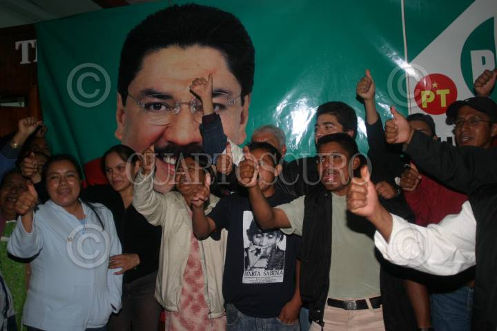 Huatla de Jiménez, OAXACA 01 Agosto 2004.- En la casa de campaña de la alianza Todos Somos Oaxaca, simpatizantes de Gabino Cué celebran los resultados preliminares de la elección para gobernador y diputados locales. FOTO: Nelly Salas/CUARTOSCURO.COM
