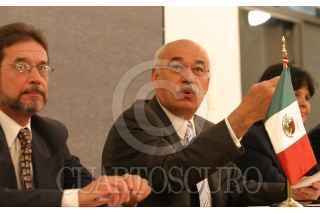 México, D.F. 02 AGOSTO 2004.- Nuevo equipo de comunicación social de la presidencia de la República, encabezado por Rubén Aguilar Valenzuela (sentado). FOTO: Sandra Perdomo/CUARTOSCURO.COM