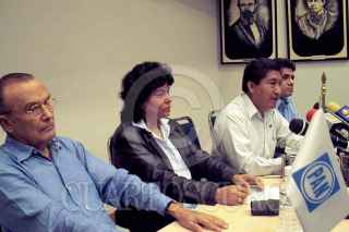 Chilpancingo, Guerrero, 20SEPTIEMBRE2004.- Max Tejeda Martínez, Porfiria Sandoval Arroyo, David Tapia Bravo y Rodolfo Tapia Bello, diputados de la fracción parlamentaria del PAN en el congreso local, durante la conferencia de prensa para dar a conocer su agenda legislativa para el próximo periodo de sesiones. Foto: Oscar Alvarado/CUARTOSCURO.COM