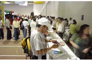 MEXICO D.F. 23SEPTIEMBRE2004.- Se inauguro la Expo Maratón, espacio donde los patrocinadores y organizadores del Maratón de la Ciudad de México realizan las inscripciones de los competidores. FOTO: Germán Romero/CUARTOSCURO.COM