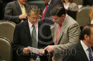 MEXICO D.F. 23SEPTIEMBRE2004.- Miguel Angel Yunez, diputado independiente y Germán Martínez diputado del PAN, durante la sesión ordinaria en la Cámara de Diputados. FOTO: Moisés Pablo/CUARTOSCURO.COM