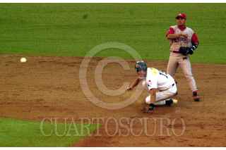Victor Bojorquez de los Diablos de México llega a home después de anotar un homerun, en el primer encuentro en tre Tigres capitalinos y Diablos. En la pizarra hasta la 6a entrada empataban a 2 -2 carreras. FOTO: David Bolaños/CUARTOSCURO.COM