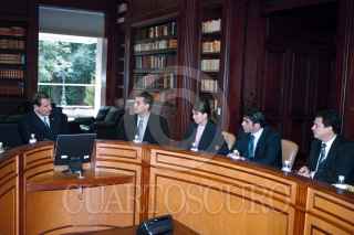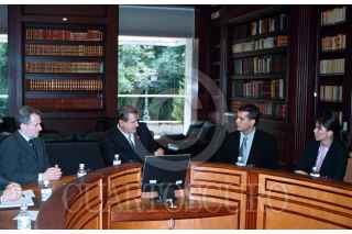 México, D.F., SEPTIEMBRE2004.- Vicente Fox Quesada, presidente de la República y Santiago Creel, secretario de Gobernación, se reunieron la diregencia del Partido Verde Ecológista; Jorge Emilio González, líder nacional del PMVE y Gloria Lavara, senadora del PMVE, en los Pinos. FOTO: Juan Diego Salazar/CUARTOSCURO.COM