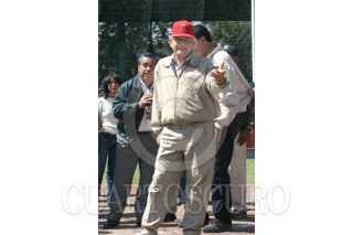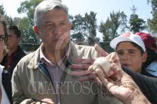 MEXICO, D.F. 02OCTUBRE2004.- Andrés Manuel López Obrador, jefe de gobierno del D. F. se prepara a batear luna pelota de beisabol con lo que se inauguró la de temporada de beisbol en el deportivo Reynosa. FOTO: Nelly SalasCUARTOSCURO.COM