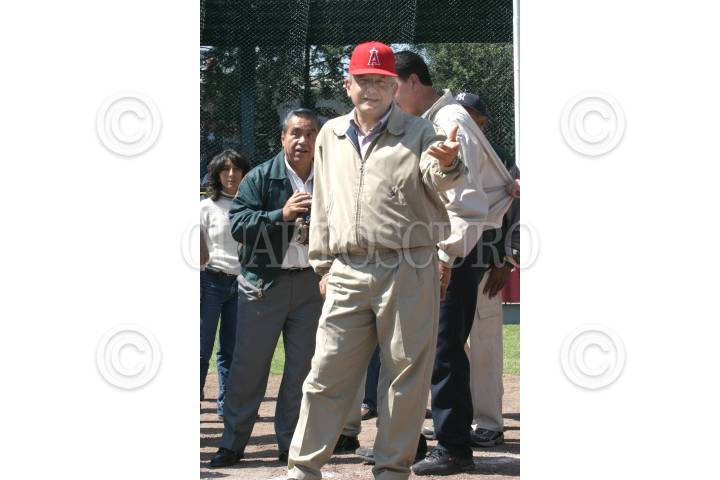 MEXICO, D.F. 02OCTUBRE2004.- Andrés Manuel López Obrador, jefe de gobierno del D. F. se prepara a batear luna pelota de beisabol con lo que se inauguró la de temporada de beisbol en el deportivo Reynosa. FOTO: Nelly SalasCUARTOSCURO.COM