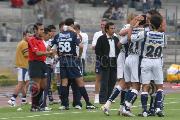 MEXICO, D. F. 03OCTUBRE2004.- Francisco Fonseca de los pumas de la Universidad domina la jugada ante un jugador de Dorados de Sinaloa, en partido disputado en ciudad Univesitaria. FOTO: Nelly Salas/CUARTOSCURO.COM