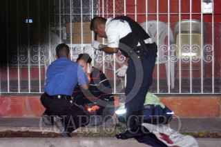 CD. JUAREZ, CHIHUAHUA 10NOVIEMBRE2004.- Paramédicos del cuerpo de rescate auxilian a Laura Hernández, quien resultara lesionada luego de que la camioneta en que viajaba fuera alcanzada por el fuego cruzado, que se desató cuando un grupo de sicarios dispararon ráfagas de rifles de asalto en contra de Gabriel Avila, hiriéndolo de muerte. La hija de ambos, Bárbara Leyva de cuatro años de edad también falleció. FOTO: JGuadalupe Pérez/CUARTOSCURO.COM