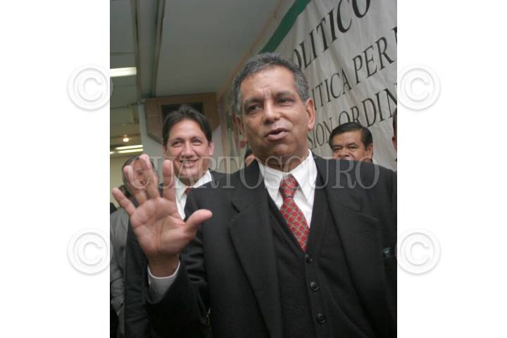 MEXICO D.F 12 NOVIEMBRE 2004.- Fidel Herrera, candidato electo a la gubernatura de Veracruz, festejó su triunfo durante los trabajos de la comisión permanente del consejo político nacional del PRI realizado en el CEN. A la derecha Roberto Madrazo Pintado, presidente del CEN, a la izquierda Enrique Jackson. FOTO:Juan Flores/CUARTOSCURO.COM