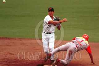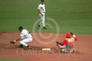 Ray Martínez, tercera base de los Diablos de México llega a segunda base en safe. En el segundo encuentro entre los Tigres Capitalinos y los Diablos de México, hasta la 5a entrada los Tigres ganaban 5-2 carreras, en el Foro Sol. FOTO: David Bolaños/CUARTOSCURO.COM