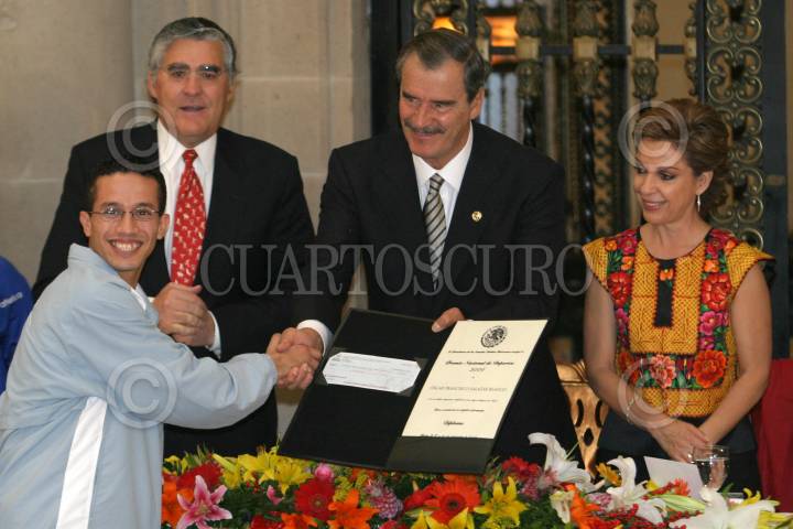 MEXICO, D.F. 20NOVIEMBRE2004.- Manlio Fabio Beltrones, presidente de la mesa directiva de la cámara de diputados, la atleta Ana Gabriela Guevara y el ministro Mariano Azuela durante la ceremonia de entrega del premio Nacional del Deporte 2004. FOTO: Nelly Salas/CUARTOSCURO.COM