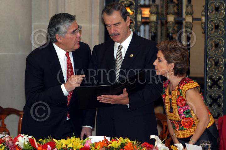 MEXICO, D.F. 20NOVIEMBRE2004.- Manlio Fabio Beltrones, presidente de la mesa directiva de la cámara de diputados, la atleta Ana Gabriela Guevara y el ministro Mariano Azuela durante la ceremonia de entrega del premio Nacional del Deporte 2004. FOTO: Nelly Salas/CUARTOSCURO.COM