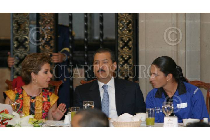 MEXICO, D.F. 20NOVIEMBRE2004.- Manlio Fabio Beltrones, presidente de la mesa directiva de la cámara de diputados, la atleta Ana Gabriela Guevara y el ministro Mariano Azuela durante la ceremonia de entrega del premio Nacional del Deporte 2004. FOTO: Nelly Salas/CUARTOSCURO.COM