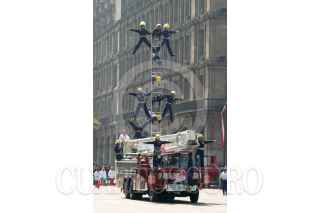 MEXICO, D.F. 20NOVIEMBRE2004.- Pemex participó en el desfile deportivo con motivo del XCIV aniversario de la Revolución Mexicana, con un carro de bonberos. FOTO: Nelly Salas/CUARTOSCURO.COM
