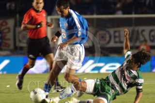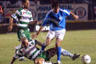 MEXICO, D.F. 20NOVIEMBRE2004.- Joel Huiqui festejó el gol anotado por él que le dio la vistoria a su equipo en el minuto 90 en el partido de la jornada 17 del torneo de apertura 2004 en el que Cruz Azul venció un gol por cero a Santos Laguna. FOTO: Iván Stephens/CUARTOSCURO.COM