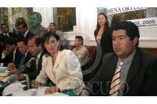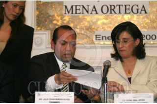 MEXICO, D.F. 03ENERO2005.- Julio César Camacho, presidente de la comisión especial que se formó en la Asamblea Legislativa del Distrito Federal para esclarecer los acontecimientos en San Juan Ixtayopan, entregó a Fátima Mena, delegada de Tláhuac una serie de documentos. FOTO: Nelly Salas/CUARTOSCURO.COM