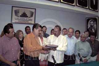 CHILPANCINGO, GUERRERO, 03ENERO2005.- Ruben Figueroa Alcocer, exgobernador; René Juárez Cisneros, actual gobernador y Angel Aguirre Rivero, exgobernador; durante la ceremonia de inauguración de las instalaciones del nuevo palacio de gobierno en la ciudad de Chilpancingo, en el marco del sexto informe de gobierno de Juárez Cisneros. FOTO: Oscar Alvarado/CUARTOSCURO.COM