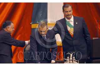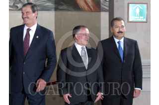 Mèxico, D.F., 03ENERO2005.- Mariano Azuela Huitrón, presidente de la Suprema Corte de Justicia de la Nación y Manlio Fabio Beltrones, presidente de la Cámara de Diputados se reunieron en la Suprema Corte. En la imagen, Vicente Fox, Mariano Azuela y Manlio Fabio, durante el informe de gobierno el 1 de Septiembre del 2004. FOTO: Moisés Pablo/CUARTOSCURO:COM