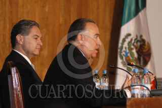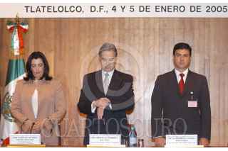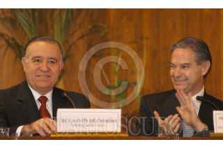 MEXICO, D.F. 04ENERO2005.- Durante la XVI Reunión de Embajadores y Cónsules de México, el canciller Luis Ernesto Derbez escucha al empresario Valentín Diez Morodo quien ofrecio una conferencia sobre la competiividad mexicana en la globalización. FOTO: Germán Romero/CUARTOSCURO.COM