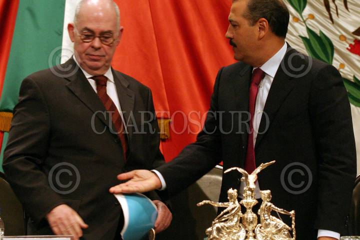 México, D.F., 12ENERO2005.- Peter Schieder, presidente del consejo parlamentario de la Unión Europea, visitó la Cámara de Diputados en donde fue recibido por Manlio Fabio Beltrones, presidente de la Cámara de Diputados. FOTO: Moisés Pablo/CUARTOSCURO.COM