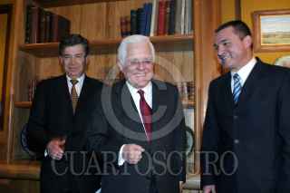 México, D.F., 12ENERO2005.- Angel Domene, banquero, Genaro Gongora Pimentel, ministro de la Suprema Corte de Justicia y Gerardo García Luna, director del AFI, durante la presentación del libro "Evolución del Secuestro en México y las decisiones del Poder Judicial de la Federación en la materia", escrito por el ministro. FOTO: Moisés Pablo/CUARTOSCURO.COM