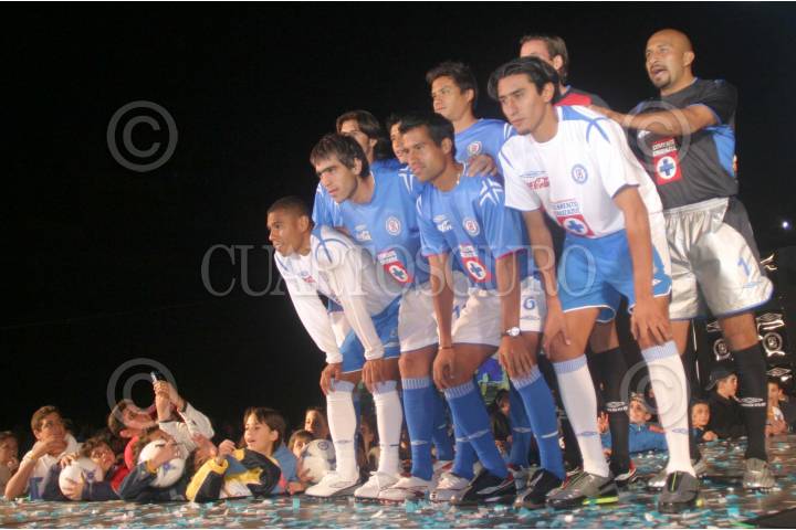 MEXICO D.F 12 ENERO 2004.- El jugador Fransisco "Kikin" Fonseca firma playeras a unos aficionados durante la presentaciòn de los nuevos uniformes del equipo del Cruz Azul. FOTO: Eunice Adorno/CUARTOSCURO.COM